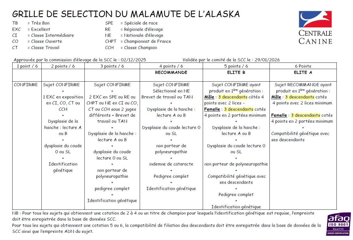 SECRETARIAT DE L'ALASKAN MALAMUTE CLUB DE FRANCE :